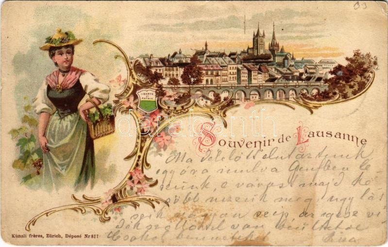 1899 (Vorläufer) Lausanne. Künzli freres Nr. 817. Art Nouveau, floral,... https://www.darabanth.com/hu/426-Gyorsarveres/426.0/Kepeslapok/Svajc~1500099/1899-Vorlaufer-Lausanne-Kunzli-freres-Nr-817-Art-Nouveau-floral-litho-EK~II2713393