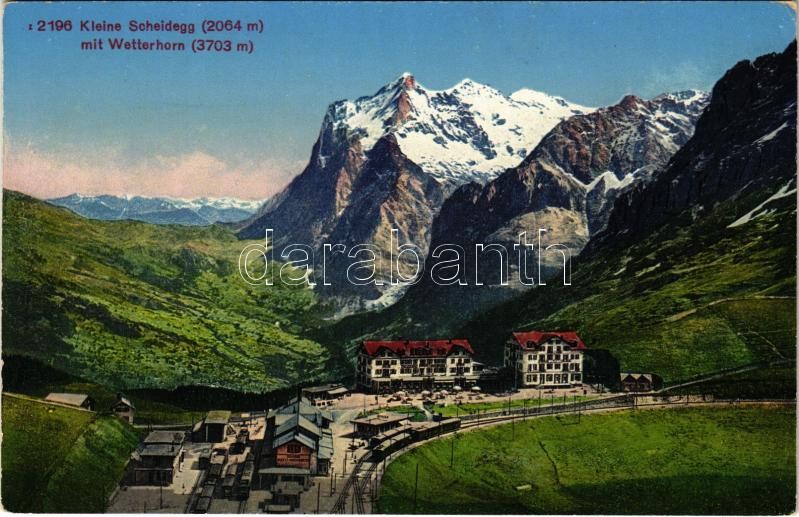 Kleine Scheidegg, mit Wetterhorn / railway station, train (EK) https://www.darabanth.com/hu/426-Gyorsarveres/426.0/Kepeslapok/Svajc~1500099/Kleine-Scheidegg-mit-Wetterhorn-railway-station-train-EK~II2716097
