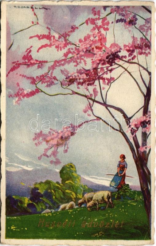 1929 Húsvéti üdvözlet / Easter greeting art postcard, lady with sheep ... https://www.darabanth.com/hu/426-Gyorsarveres/426.0/Kepeslapok/Udvozlolapok-Unnepek~1500049/1929-Husveti-udvozlet-Easter-greeting-art-postcard-lady-with-sheep-s-T-Corbella-EK~II2713884