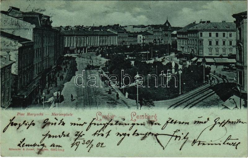 1902 Lviv, Lwów, Lemberg; Plac Maryacki / Marienplatz / square, tram, ... https://www.darabanth.com/hu/426-Gyorsarveres/426.0/Kepeslapok/Ukrajna~1500104/1902-Lviv-Lwow-Lemberg-Plac-Maryacki-Marienplatz-square-tram-shops-EK~II2717096