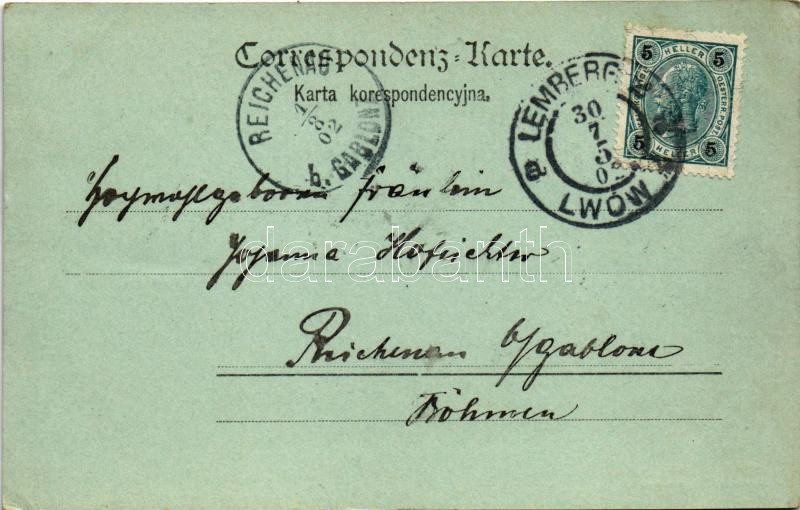 Leírás: 1902 Lviv, Lwów, Lemberg; Plac Maryacki / Marienplatz / square, tram, shops (EK)