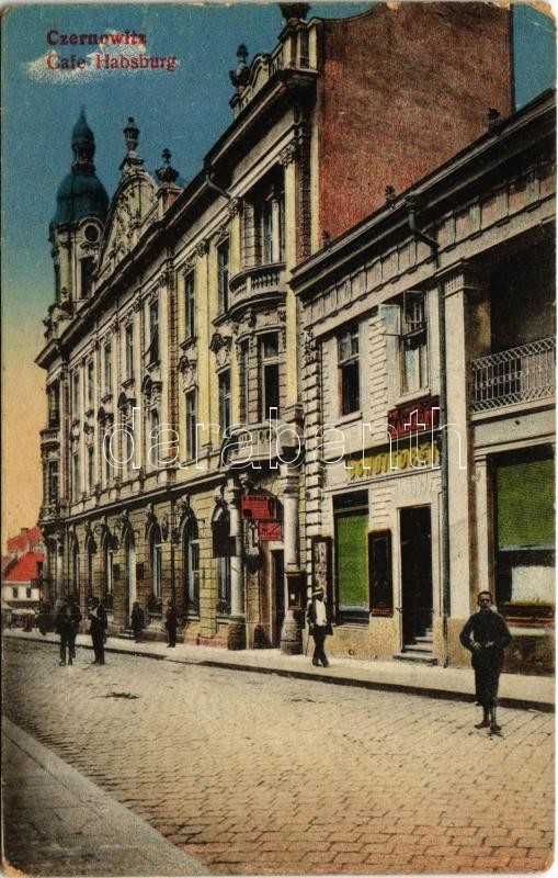 Chernivtsi, Czernowitz, Cernauti, Csernyivci (Bukovina); Cafe Habsburg... https://www.darabanth.com/hu/426-Gyorsarveres/426.0/Kepeslapok/Ukrajna~1500104/Chernivtsi-Czernowitz-Cernauti-Csernyivci-Bukovina-Cafe-Habsburg-Conditorei-Zahnarzt-B-Bin~II2721728