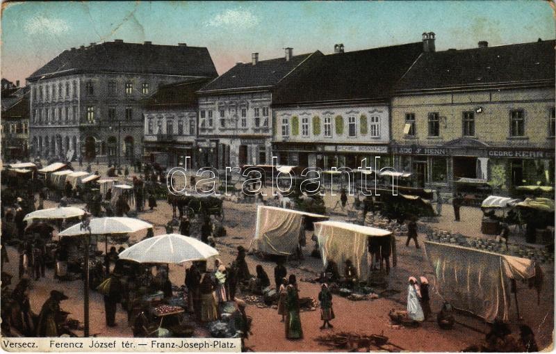 1914 Versec, Vrsac; Ferenc József tér, piac, Kern György, Michael Bosn... https://www.darabanth.com/hu/426-Gyorsarveres/426.0/Kepeslapok/Vajdasag~1500010/1914-Versec-Vrsac-Ferenc-Jozsef-ter-piac-Kern-Gyorgy-Michael-Bosnyacski-Adolf-Henn-uzlete~II2717496