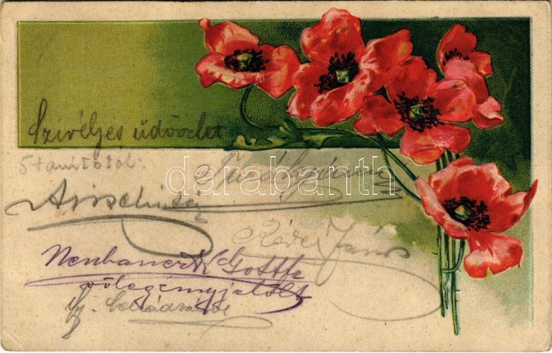 Leírás: 1907 Flowers. Art Nouveau, Emb. litho (EK)