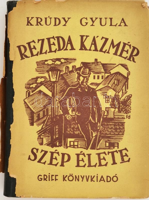 Krúdy Gyula: Rezeda Kázmér szép élete. (Regény a szép Budapestről). Bp., 1944, Griff (Kassa, Athenaeum-ny.), 211 p. Első kiadás. Kiadói aranyozott félvászon-kötés, sérült, szétváló kiadói papír védőborítóban (belül jó állapotban).