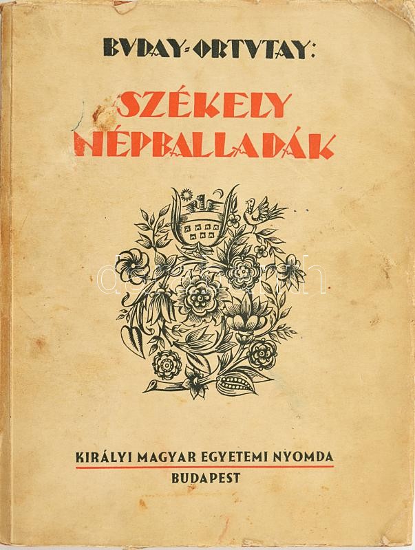 Székely népballadák. Összeállította és magyarázta: Ortutay Gyula. Buday György fametszeteivel. Bp.,1935., Kir. Magyar Egyetemi Nyomda, 311+1 p. Első kiadás. Kiadói papírkötésben, sérült