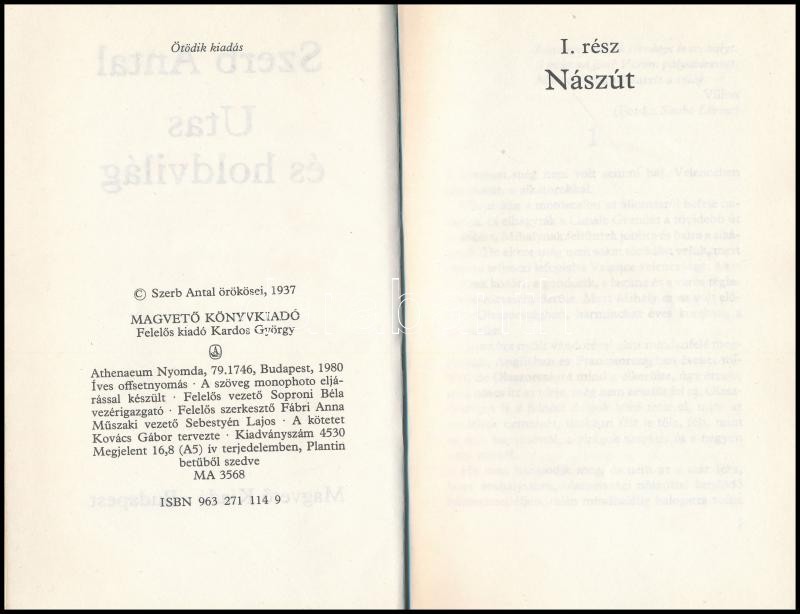 Leírás: Szerb Antal: Utas és holdvilág. Bp., 1980, Magvető. Kiadói egészvászon-kötés, kiadói papír védőborítóban.
