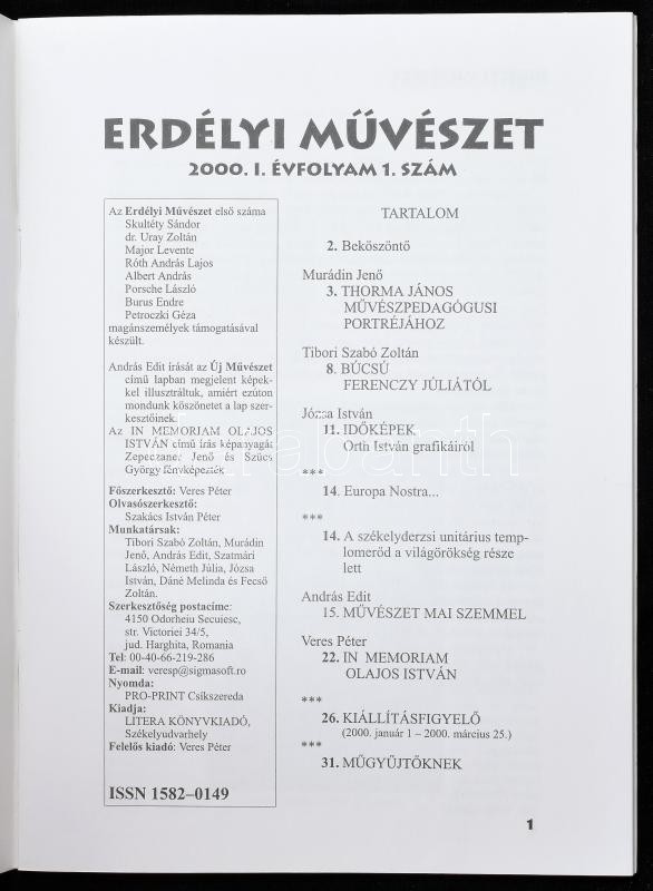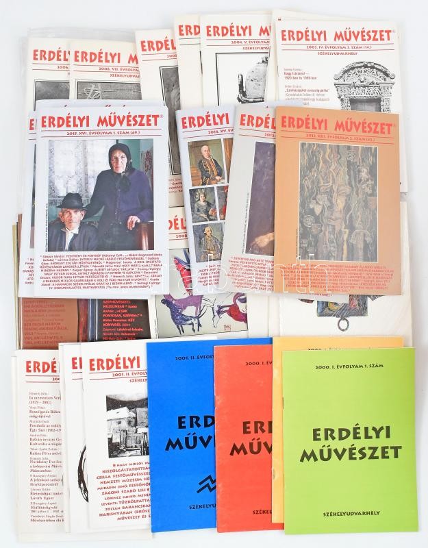 2000-2016 Erdélyi Művészet művészeti folyóirat 1-4,6-7,9-24,26-36, 39, 43-44, 48-51. számai. Közte I. évf. 1. szám is. Összesen: 40 szám, hiányoznak: 5,8,25,37,38,40,41,42,45,46,47. Szerk.: Veres Péter. Székelyudvarhely, Litera-Litera-Veres Könyvkiadó. Benne számos érdekes írással. Kiadói papírkötésekben, benne 3 bontatlan számmal, egy számnak a hátsó borítója hiányos.