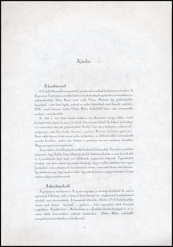 Leírás: Orbán Balázs kiadatlan fényképei. (Székely néprajzi képösszeállítás). Közreadta és szerk.: Zepeczaner Jenő. Székelyudvarhely, 2000, Haáz Rezső Alapítvány, 6 p. + 13 t. (fekete-fehér fotók). Kiadói papírmappában.
