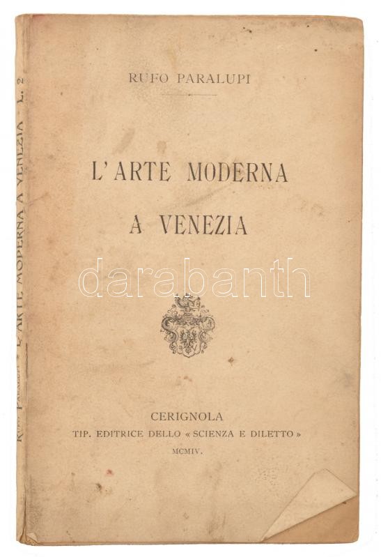 Rufo Paralupi: L'arte moderna a Venezia. Cerginola, 1904. scienza e diletto. Lyka Károly művészettörténésznek DEDIKÁLT példány. Kiadói papírkötésben 175p.