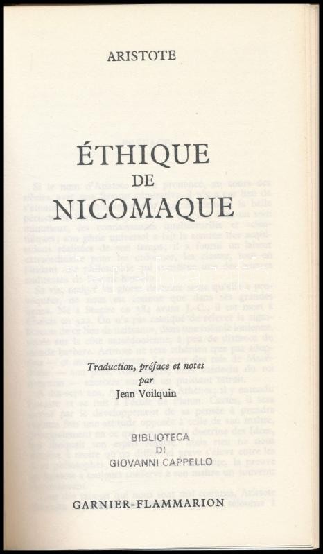 Aristote: Éthique de Nicomaque. [Arisztotelész: Nikomakhoszi etika]. P... https://www.darabanth.com/hu/426-Gyorsarveres/426.0/Konyvek/Konyvek-Idegen-nyelvu-konyvek~1000021/Aristote-Ethique-de-Nicomaque-Arisztotelesz-Nikomakhoszi-etika-Paris-1965-Garnier-Flammari~II2715424
