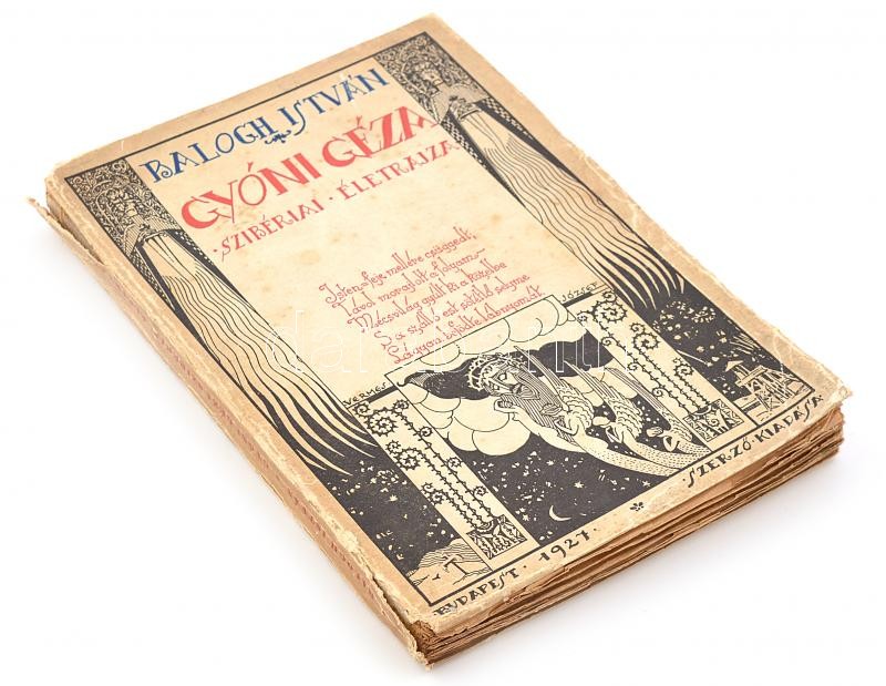 Leírás: Balogh István: Gyóni Géza szibériai életrajza. Bp., 1927. Szerzői. Vermes József grafikájával illusztrált papírkötésben szakadt
