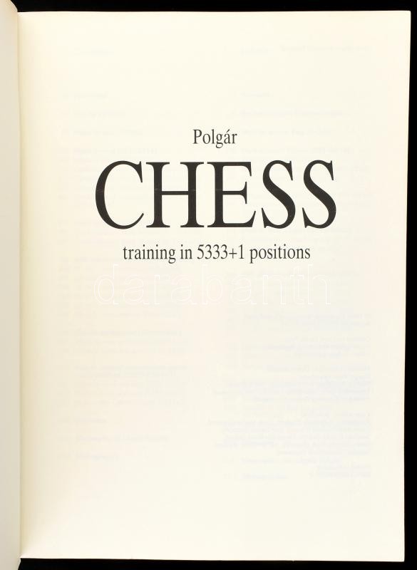 Polgár Chess Training in 5333+1 Positions. / Polgár sakk-iskola 5333+1 feladattal. Alapfoktól a mesterjelöltségig. Szerk.: Bakcsi György. Köln-Bp., 1994, Könemann-Kulturtrade, 1104 p. Tíz nyelven (közte angol, német, magyar). Kiadói papírkötés.