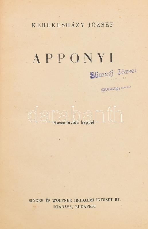 Kerekesházy József: Apponyi. Bp., Singer és Wolfner. Kiadói félvászon ... https://www.darabanth.com/hu/426-Gyorsarveres/426.0/Konyvek/Konyvek-Tortenelem~1000009/Kerekeshazy-Jozsef-Apponyi-Bp-Singer-es-Wolfner-Kiadoi-felvaszon-kotes-kopottas-allap~II2718658