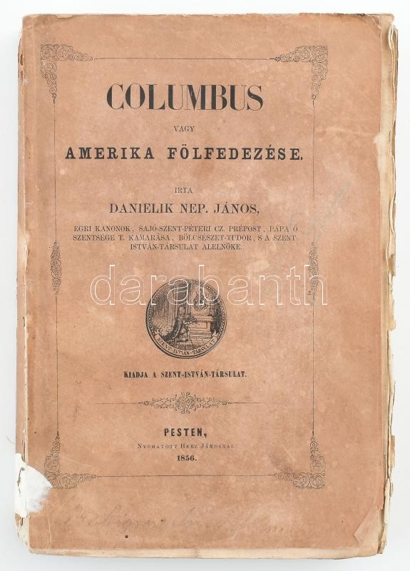 Danielik Nep[omuk] János: Columbus vagy Amerika fölfedezése. Pesten, 1... https://www.darabanth.com/hu/426-Gyorsarveres/426.0/Konyvek/Konyvek-Utazas-helytortenet~1000006/Danielik-Nepomuk-Janos-Columbus-vagy-Amerika-folfedezese-Pesten-1856-Szent-Istvan-Tarsul~II2720828