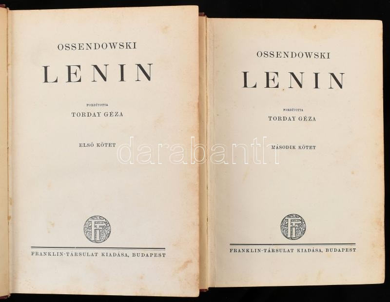 Ossendowski: Lenin I-II. Fordította Torday Géza. Bp., én., Franklin-Tá... https://www.darabanth.com/hu/426-Gyorsarveres/426.0/Konyvek/Konyvek-Utazas-helytortenet~1000006/Ossendowski-Lenin-I-II-Forditotta-Torday-Geza-Bp-en-Franklin-Tarsulat-Felvaszon-kote~II2718804
