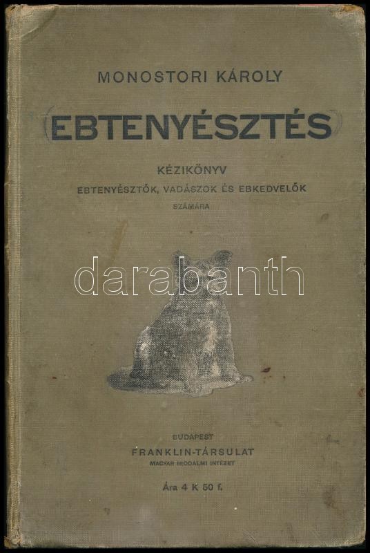 Monostori Károly: Ebtenyésztés kézikönyv ebtenyésztők, vadászok és ebkedvelők számára. (A kutya természetrajzi, bonc- és élettani s küllemtani leírása, fajtái, szaporítása, felnevelése, táplálása, gondozása, tanítása, használása és fontosabb hibáinak és betegségeinek orvoslása.) Bp.,én.,Franklin, 196 p. Szövegközti képekkel illusztrált. Kiadói kopott egészvászon-kötés, kissé sérült gerinccel, kissé foltos lapokkal, laza fűzéssel.