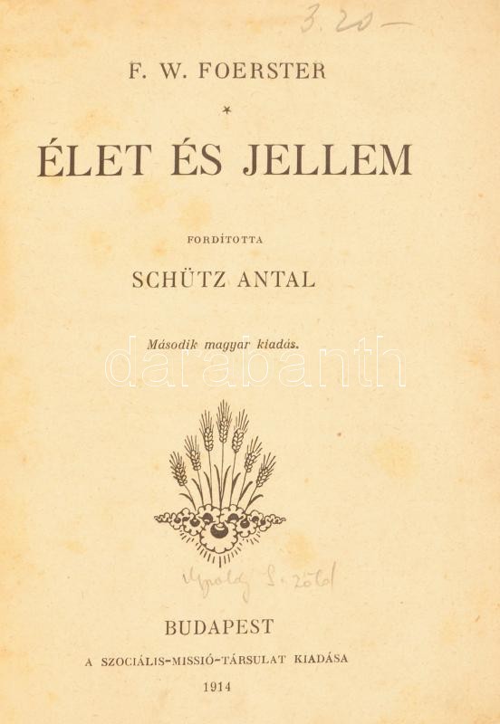F. W. Foerster: Élet és jellem. Ford.: Schütz Antal. Bp., 1914., Szoci... https://www.darabanth.com/hu/426-Gyorsarveres/426.0/Konyvek/Konyvek-Vallas~1000020/F-W-Foerster-Elet-es-jellem-Ford-Schutz-Antal-Bp-1914-Szocialis-Missio-Tarsulat-MC3~II2715578