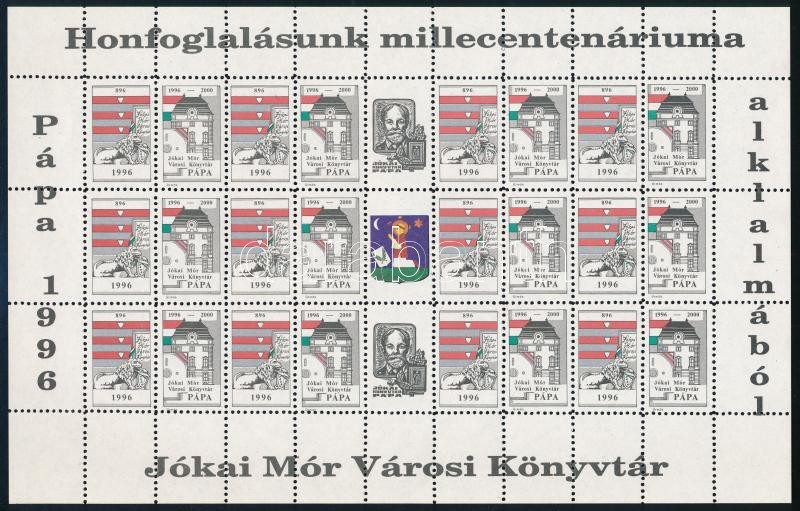 Leírás: 1996 "Honfoglalásunk millecentenáriuma" 27 db levélzáró teljes ívben