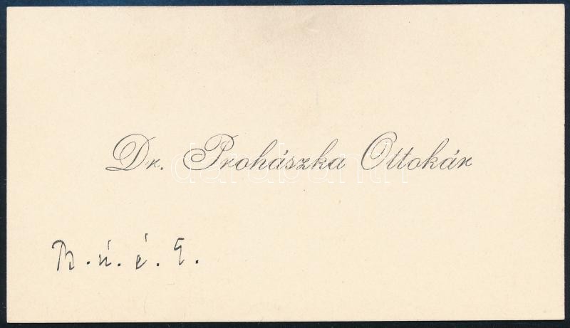 Leírás: cca 1910 Prohászka Ottokár (1858-1927) püspök autográf BÚÉK felirata névjegykártyáján