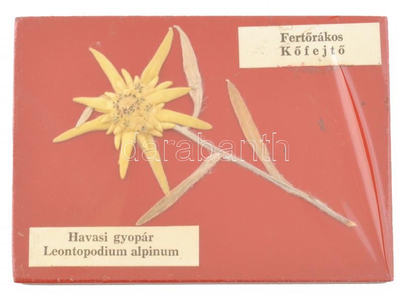 Havasi gyopár (Edelweiss) a fertőrákosi kőfejtőből, szárítva, falemezr... https://www.darabanth.com/hu/426-Gyorsarveres/426.0/Mutargy-papirregiseg-egyeb/Bolhapiac~500014/Havasi-gyopar-Edelweiss-a-fertorakosi-kofejtobol-szaritva-falemezre-preselve-12x8-5-cm~II2723468