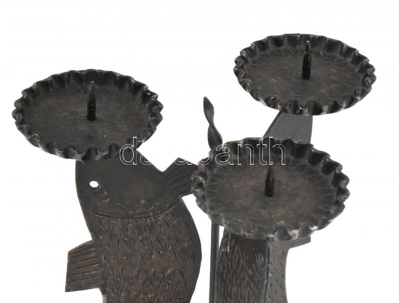 Leírás: Iparművész halas fém gyertyatartó, jelzés nélkül, kopásnyomokkal, m: 25 cm, d: 15 cm