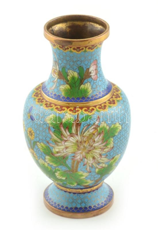 Kínai cloissonne váza, sérült, m: 19 cm