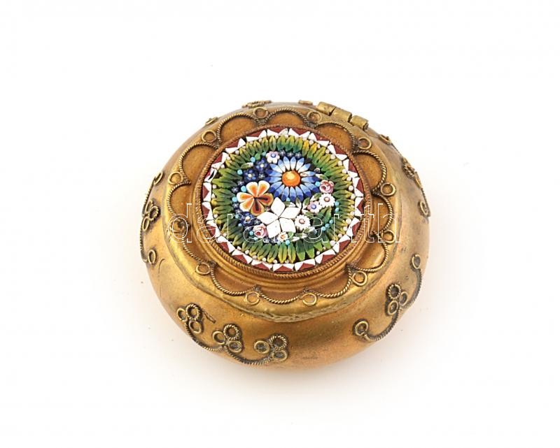 Leírás: Muránói mikromozaikos dobozka, kopott, d:4,5cm