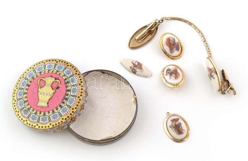 Leírás: Porcelános bizsu ékszer szett, egyiket vissza kell ragasztani