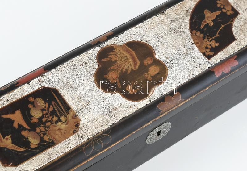 Leírás: Régi keleti doboz, kopott, korának megfelelő sérülésekkel, 10x35 cm