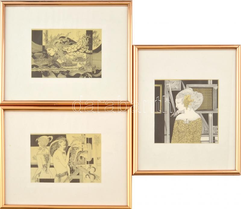 Leírás: 3 db Szász Endre nyomat üvegezett keretben. Külső méret 21x25 cm