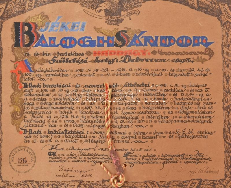 1925 I. világháborús részvételért adott emlék oklevél a M. kIr. Hadtör... https://www.darabanth.com/hu/426-Gyorsarveres/426.0/Mutargy-papirregiseg-egyeb/Militaria~500031/1925-I-vilaghaborus-reszvetelert-adott-emlek-oklevel-a-M-kIr-Hadtortenelmi-Leveltar-k~II2717960