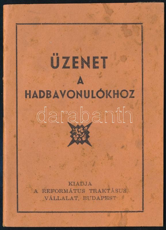 1942 Bp., Üzenet a hadba vonulókhoz, elmélkedések és imádságok, 31p https://www.darabanth.com/hu/426-Gyorsarveres/426.0/Mutargy-papirregiseg-egyeb/Militaria~500031/1942-Bp-Uzenet-a-hadba-vonulokhoz-elmelkedesek-es-imadsagok-31p~II2719610