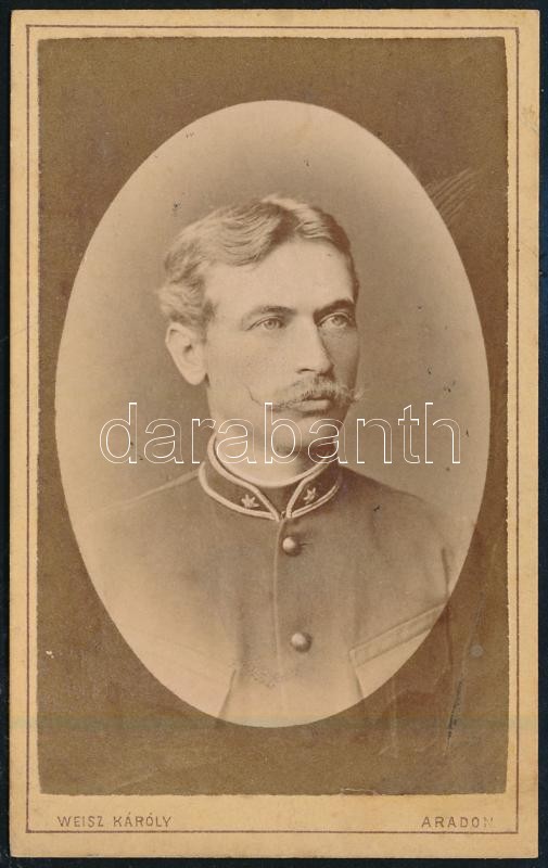cca 1880 Katona portréja, keményhátú fotó Weisz Károly aradi műtermébő... https://www.darabanth.com/hu/426-Gyorsarveres/426.0/Mutargy-papirregiseg-egyeb/Militaria~500031/cca-1880-Katona-portreja-kemenyhatu-foto-Weisz-Karoly-aradi-mutermebol-10-5C3976-5-cm~II2722109