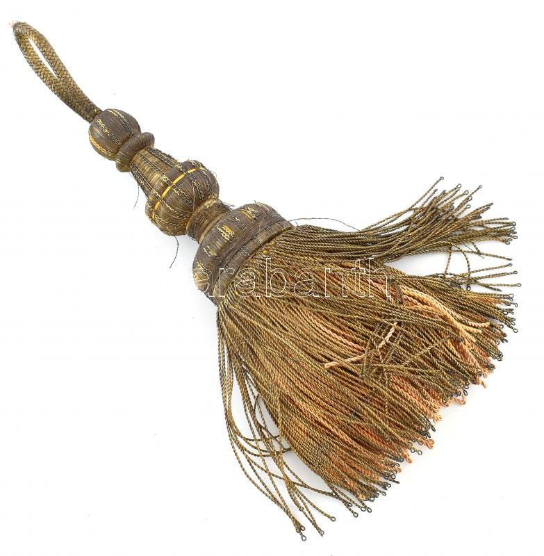 Leírás: Antik, aranyszálas, sujtásos függönyrojt, vagy ruhadísz. 22 cm
