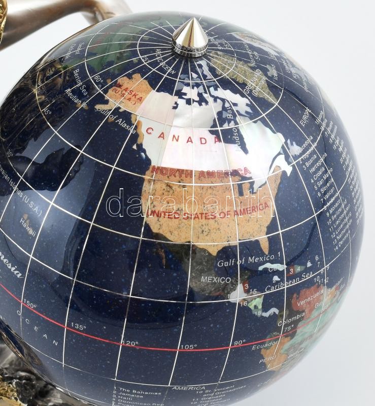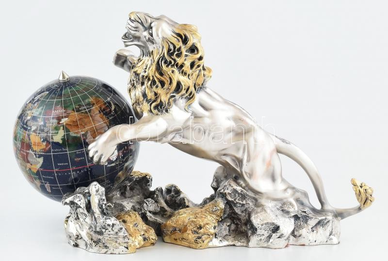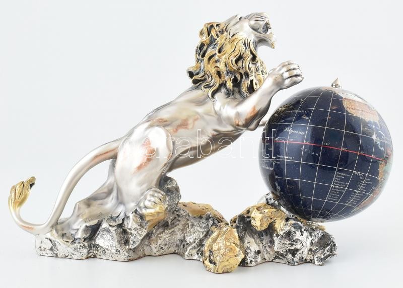 Leírás: Brunel, olasz földgömb oroszlánnal, ezüst borítású műgyanta. Jelzett, hibátlan, m: 20 cm