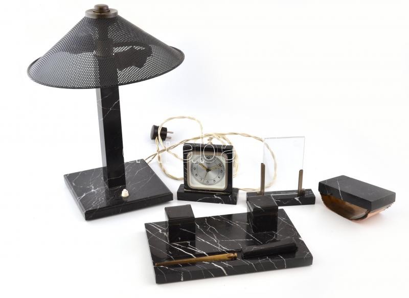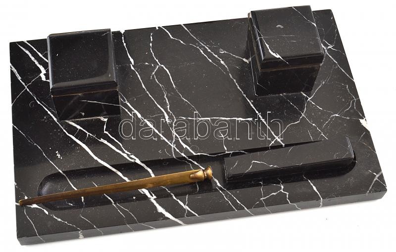 Leírás: Íróasztal készlet, márvány, sérülésekkel, vegyes méretben.