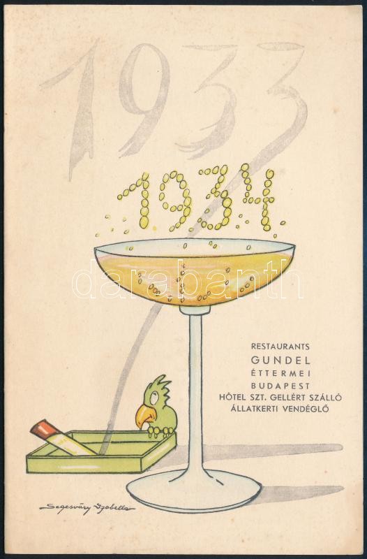1933 A budapesti Gundel Étterem szilveszteri menüje, art deco rajzos c... https://www.darabanth.com/hu/426-Gyorsarveres/426.0/Mutargy-papirregiseg-egyeb/Nyomtatvanyok~1000004/1933-A-budapesti-Gundel-Etterem-szilveszteri-menuje-art-deco-rajzos-cimlappal-szign-Segesvary~II2721698