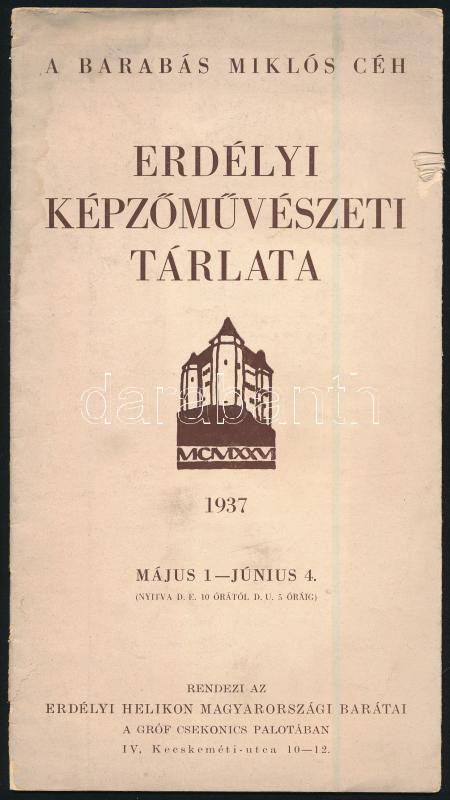 1937 A Barabás Miklós Céh erdélyi képzőművészeti tárlata, rendezi: Erd... https://www.darabanth.com/hu/426-Gyorsarveres/426.0/Mutargy-papirregiseg-egyeb/Nyomtatvanyok~1000004/1937-A-Barabas-Miklos-Ceh-erdelyi-kepzomuveszeti-tarlata-rendezi-Erdelyi-Helikon-magyaro~II2721854