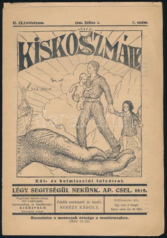 Leírás: 1940 Kisújfalu (Szlovákia, Felvidék), Kiskoszmály II. évfolyam 7. szám, kül- és belmisszió folyóirat, 8p