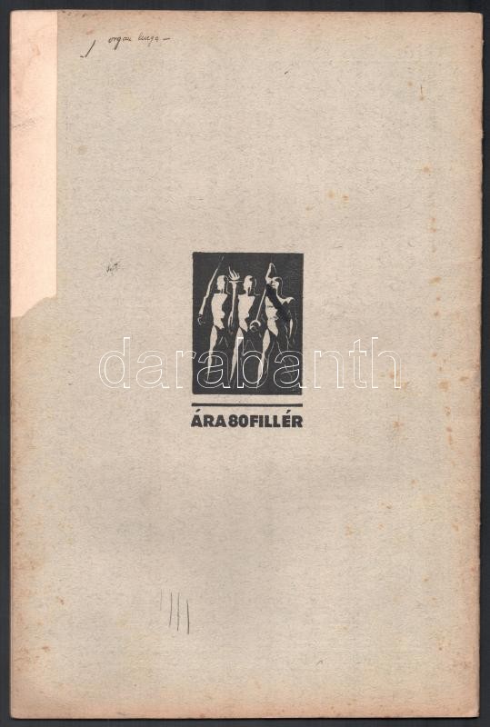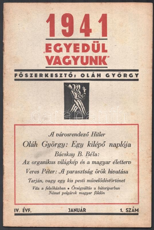 1941 "Egyedül vagyunk" IV. évfolyam 1. szám, hátsó borító ki... https://www.darabanth.com/hu/426-Gyorsarveres/426.0/Mutargy-papirregiseg-egyeb/Nyomtatvanyok~1000004/1941-Egyedul-vagyunk-IV-evfolyam-1-szam-hatso-borito-kisse-serult-32p~II2722413