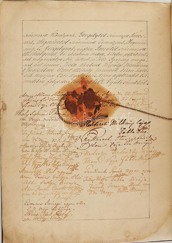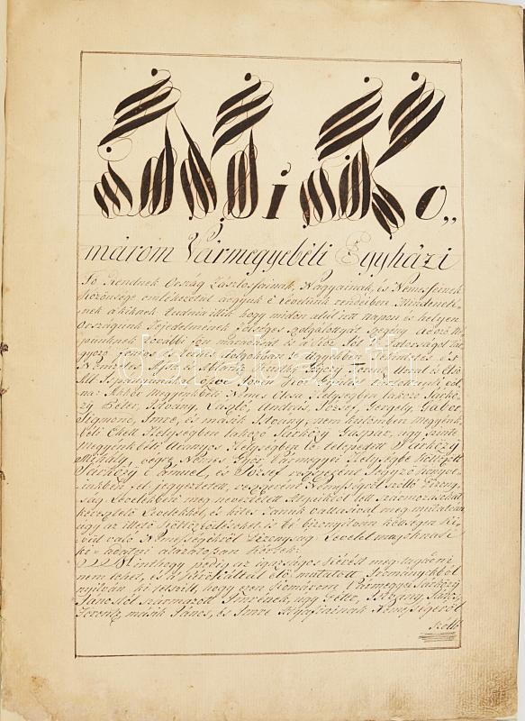 Leírás: 1818 Sárközy család nemességlevelének Komárom megyei közgyűlés előtt való kihirdetéséről szóló dísz jegyzőkönyv
