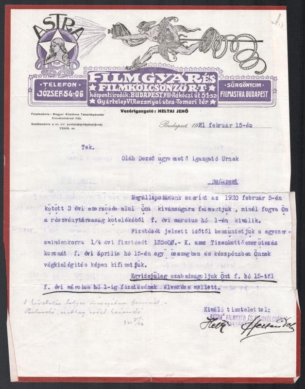 1921 Bp., Astra Filmgyár és Filmkölcsönző Rt. fejléces levélpapírjára ... https://www.darabanth.com/hu/426-Gyorsarveres/426.0/Mutargy-papirregiseg-egyeb/Okmanyok~500020/1921-Bp-Astra-Filmgyar-es-Filmkolcsonzo-Rt-fejleces-levelpapirjara-irt-level~II2719748