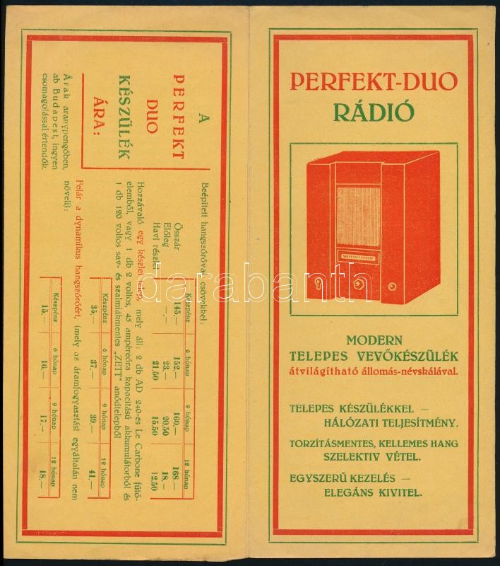 cca 1920-1940 Perfekt Duo rádió készülék reklám