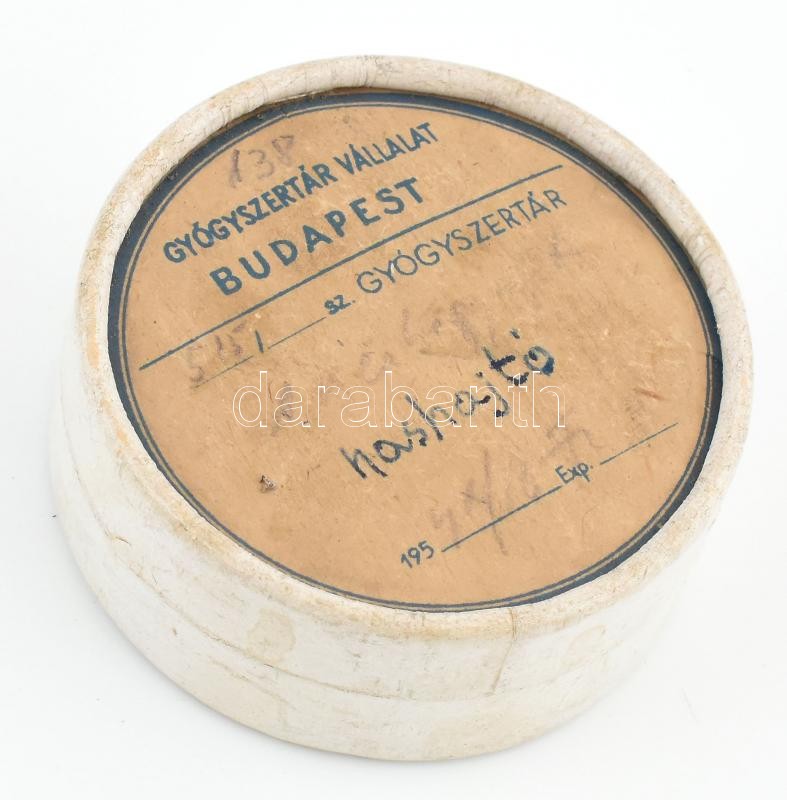 cca 1950 Gyógyszertár Vállalat Budapest hashajtó papírdoboz, d: 8 cm https://www.darabanth.com/hu/426-Gyorsarveres/426.0/Mutargy-papirregiseg-egyeb/Reklam~500024/cca-1950-Gyogyszertar-Vallalat-Budapest-hashajto-papirdoboz-d-8-cm~II2718630