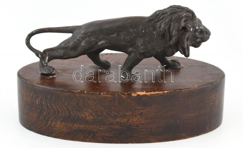 Leírás: Bronz oroszlán fa alapon 16x11 cm