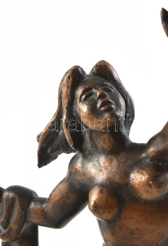 Leírás: Fürdőző női akt. Patinázott bronz. Jelzés nélkül. m:26cm