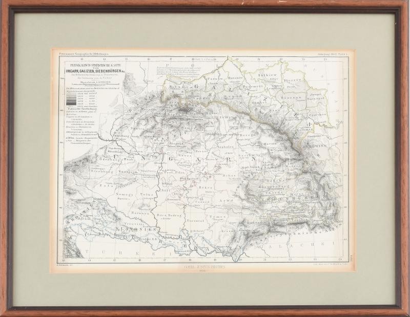 Leírás: 1862 Magyarország, Galícia, Erdély, Bukovina, Horvátország és Szlavónia térképe. Üvegezett, fakeretben. 19x24,5 cm