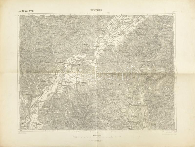 Leírás: cca 1911 Trentschin (Trencsén / Trencín) katonai térkép, 1 : 75.000, K.u.k. Militärgeographisches Institut, 62x48 cm
