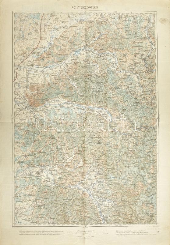 Leírás: cca 1914 Groszwardein (Nagyvárad / Oradea) katonai térkép, 1 : 200.000, K.u.k. militär-geographisches Institut, gyűrődésekkel, 65x46 cm